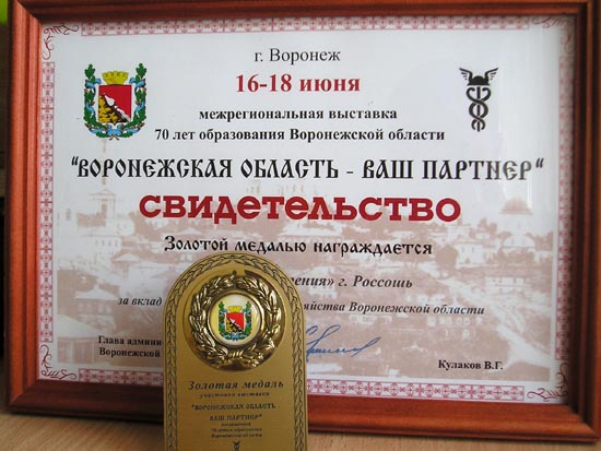 Серебряная медаль и диплом были получены предприятием в рамках ежегодной выставки «Золотая осень», Москва. |