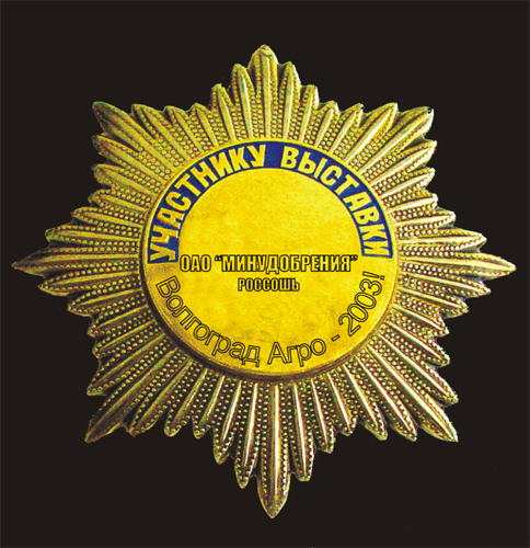 За высокое качество и широкий ассортимент продукции ОАО «Минудобрения» получило «Золотую звезду», участвуя в выставке «Волгоград Агро-2003». |