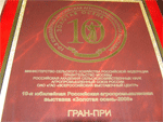 «Гран-При» 10-ой юбилейной российской агропромышленной выставки «Золотая осень» |