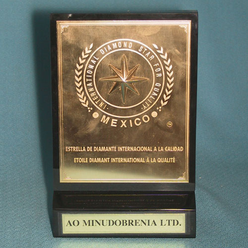 За постоянную работу по расширению ассортимента выпускаемой продукции, улучшение ее качества и большое внимание к проблемам экологии предприятие награждено призом «Хрустальная Ника» и международным дипломом. |